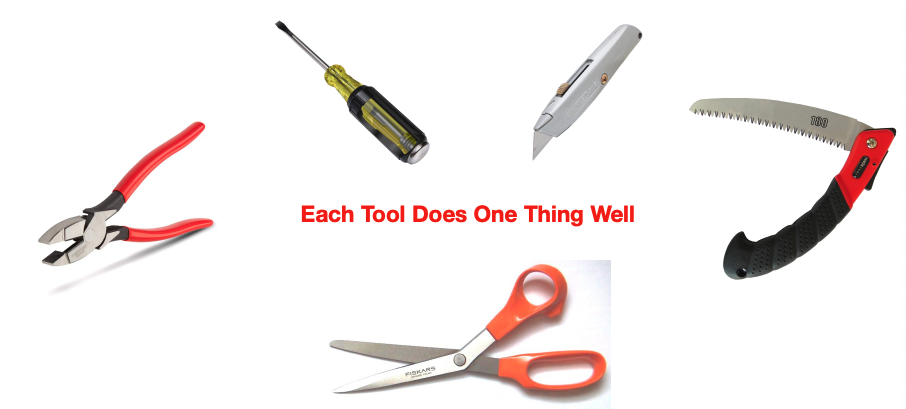 - A general purpose tool that can do X and other things is more complex than a special purpose tool that can only do X