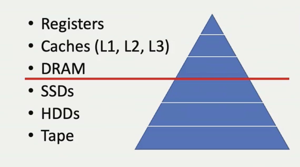 - The volatility/non-volatility split happens between DRAM and SSD’s