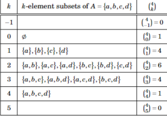 - If n and k are integers, then denotes the number of subsets that can be made by choosing elements from an -element set. We read as “n choose k.” (Some textbooks write instead of .)