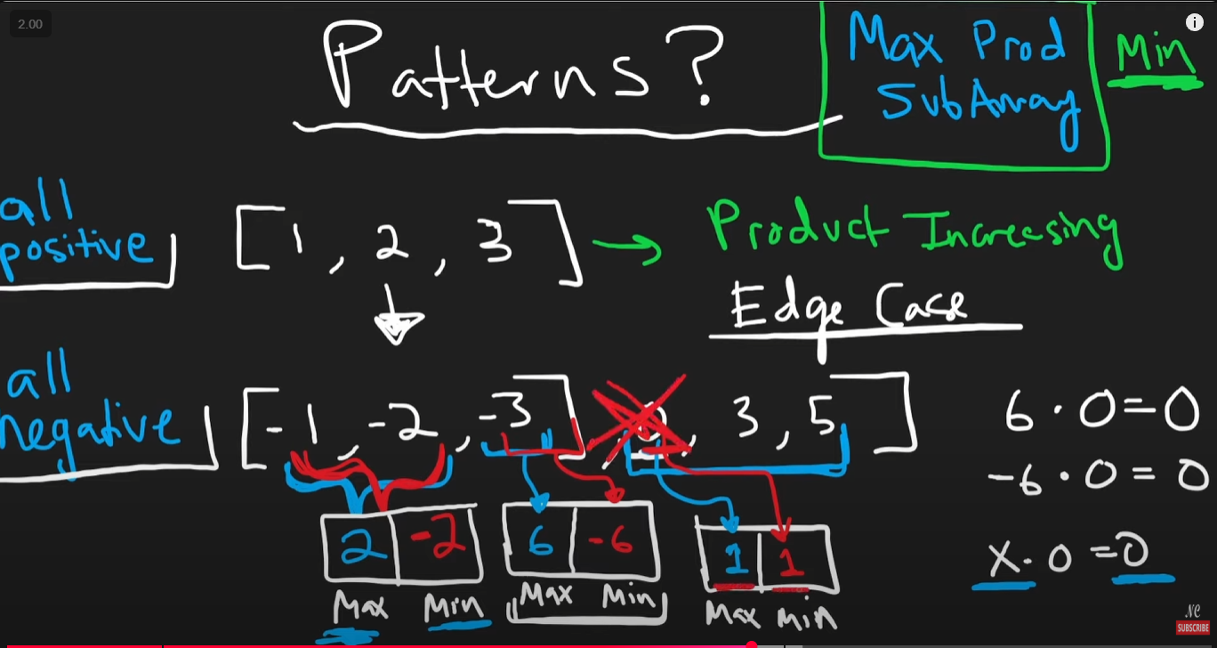 num == 0: reset cur_max = cur_min = 1 (break in product chain).
